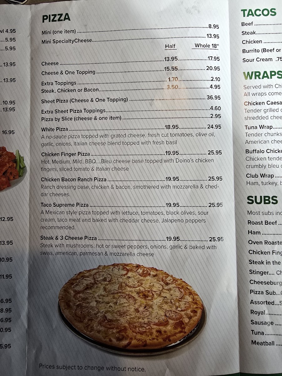 In essence, Doino's Pizzeria Bar & Grille is a beloved local spot where the scent of warm pizza fills the air, laughter echoes amidst friendly banter, and every visit feels like a nostalgic trip back to simpler, satisfying meals. If comfort food with a side of genuine hospitality is what you're after, look no further than Doino's.